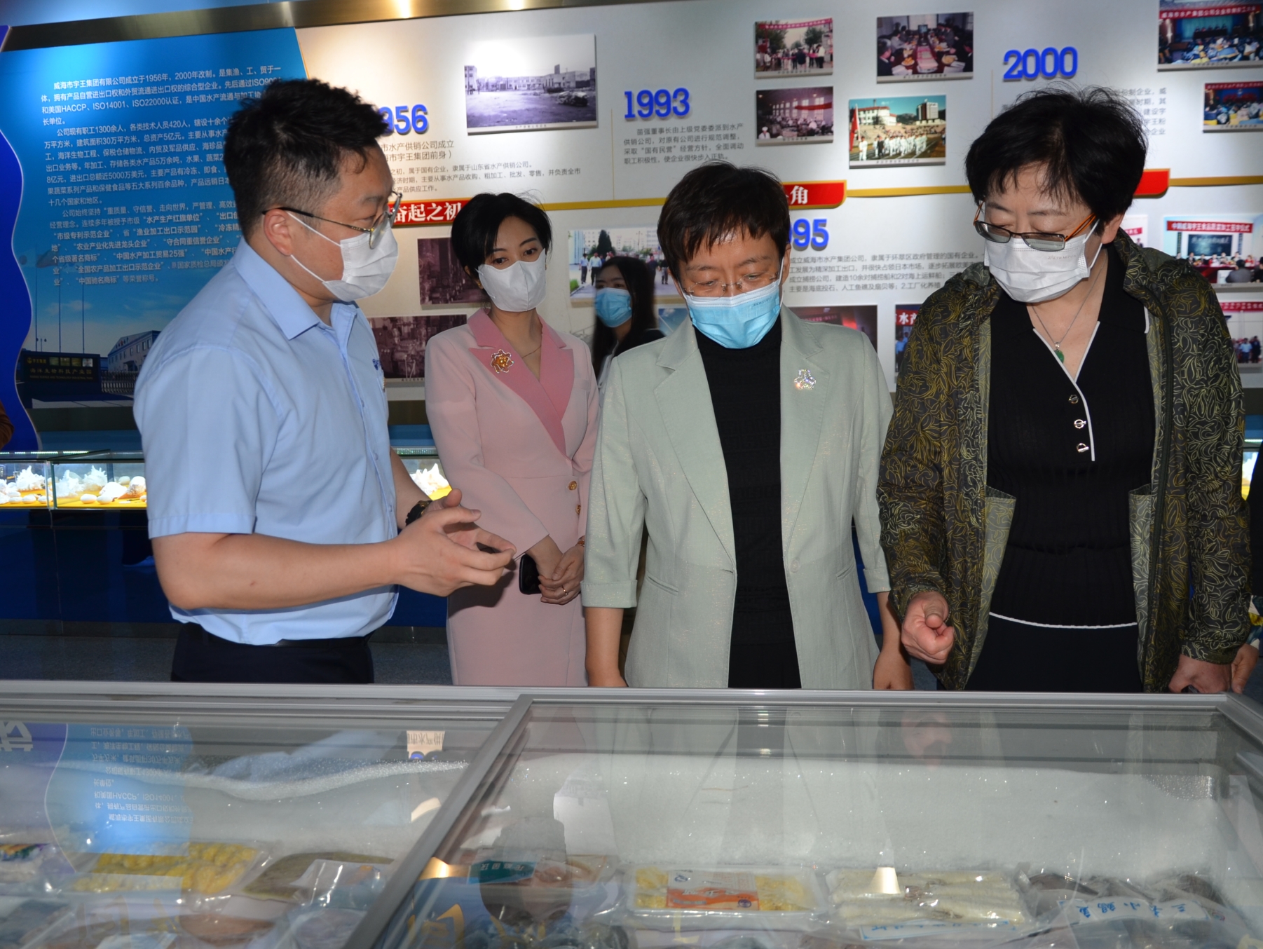 王主席一行參觀了宇王集團產品展示大廳,詳細了解了企業經營情況、產業規模及婦女就業情況,認真聽取了集團副董事長苗佳琳關于預制菜生產及產業發展情況的匯報;同時與苗強董事長就相關工作和企業發展進行詳細了解溝通,并給出指導性意見。